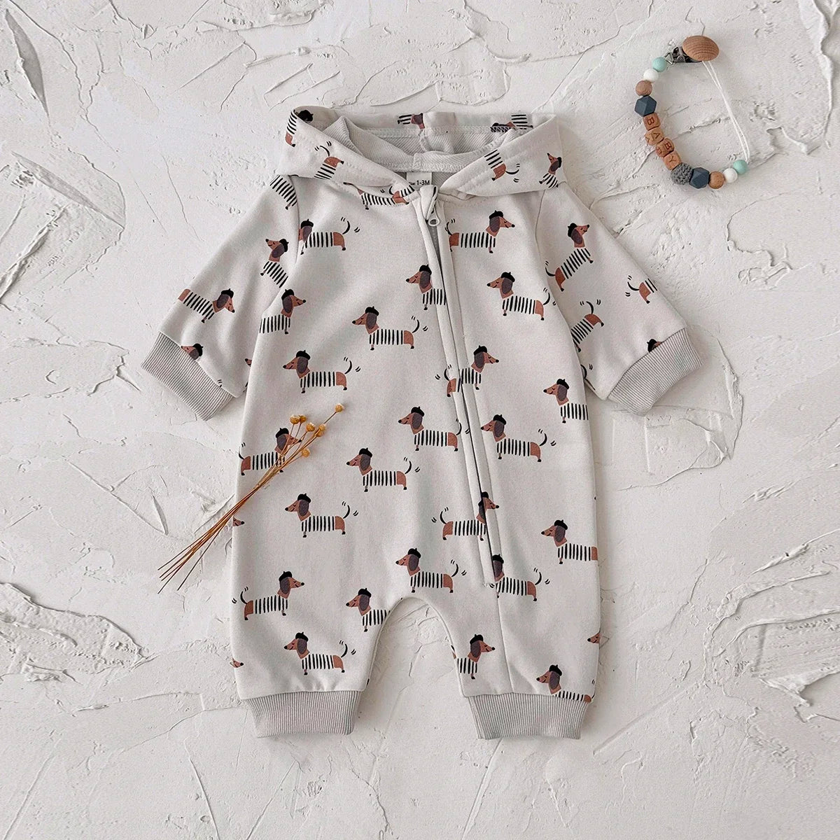 Dog Printed Hooded Jumpsuit