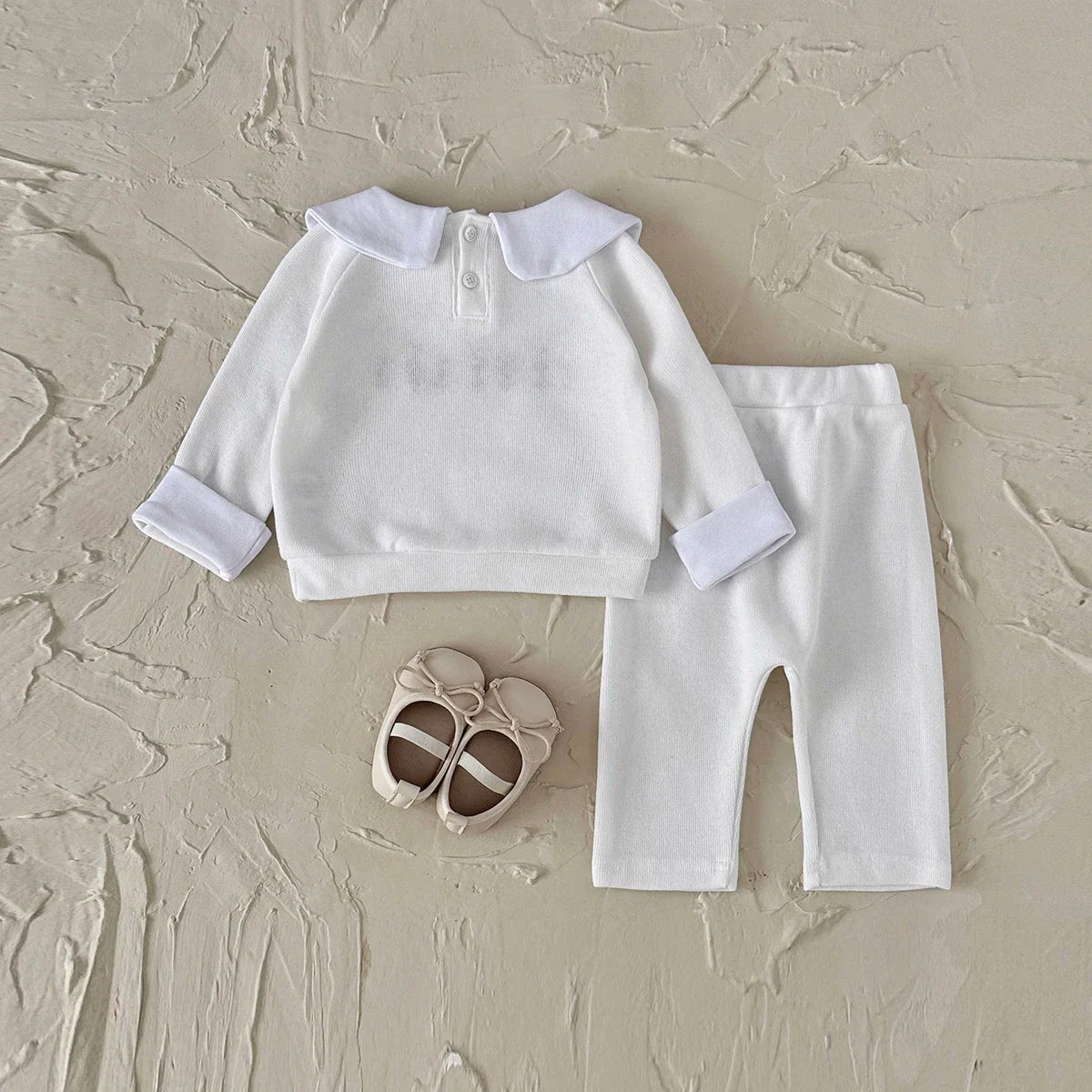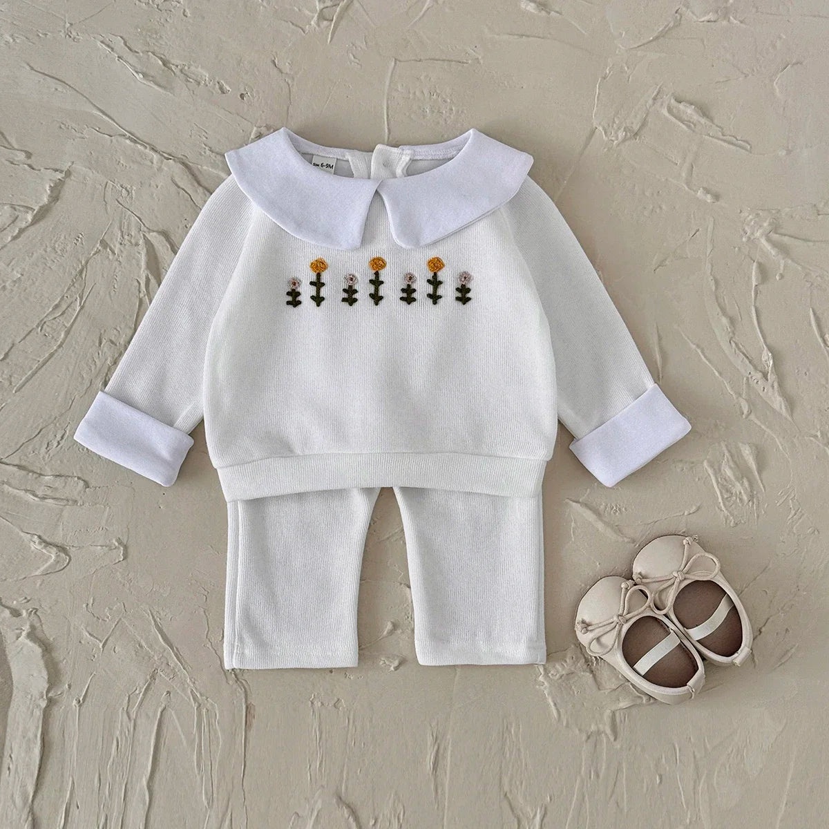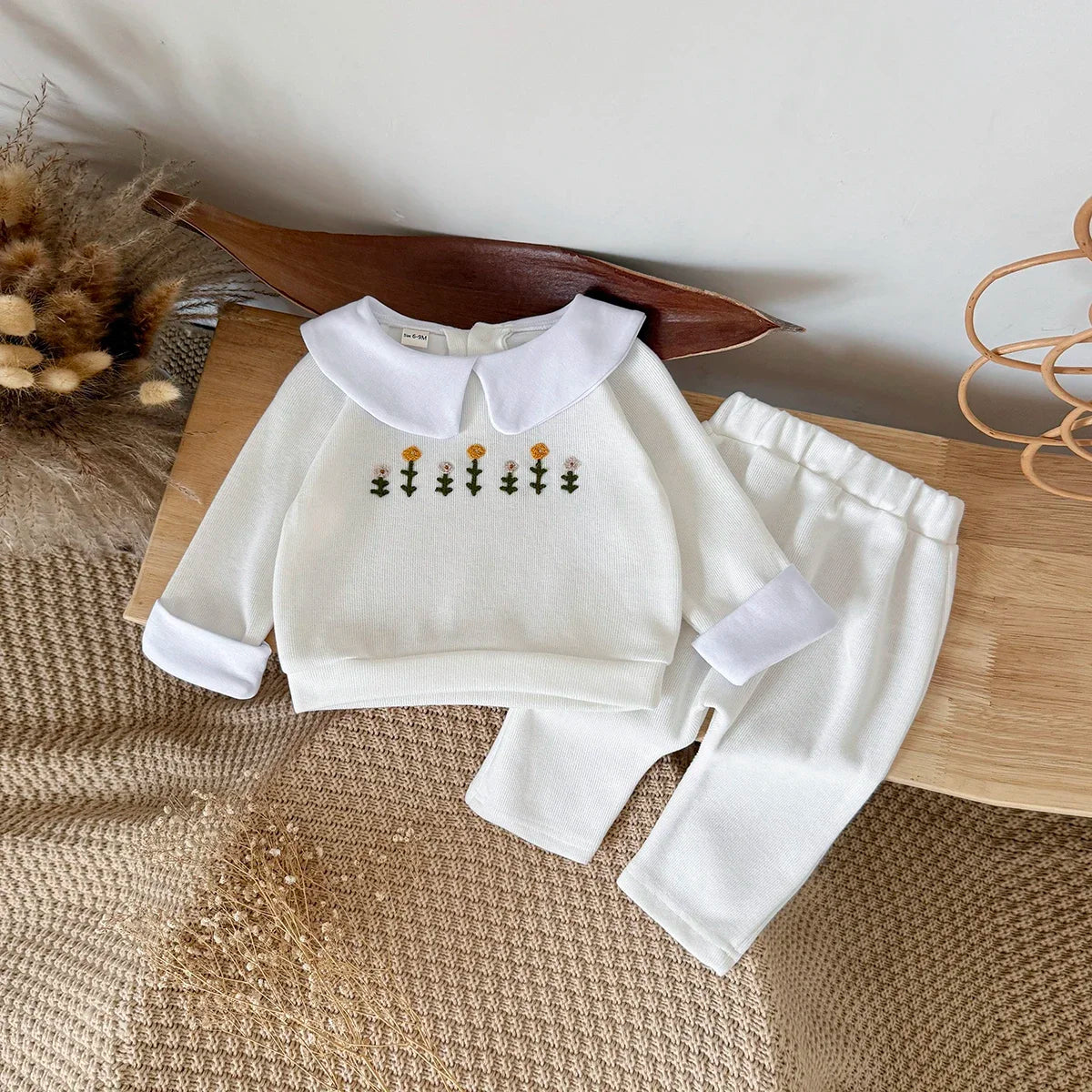 Flower Embroidered Lapel Sweatshirt Pants Set