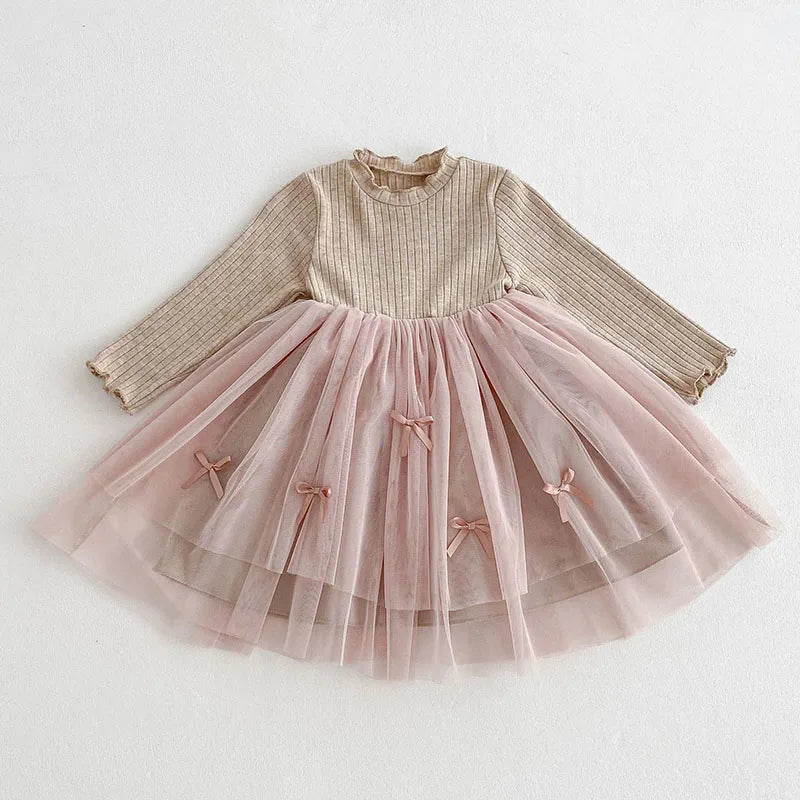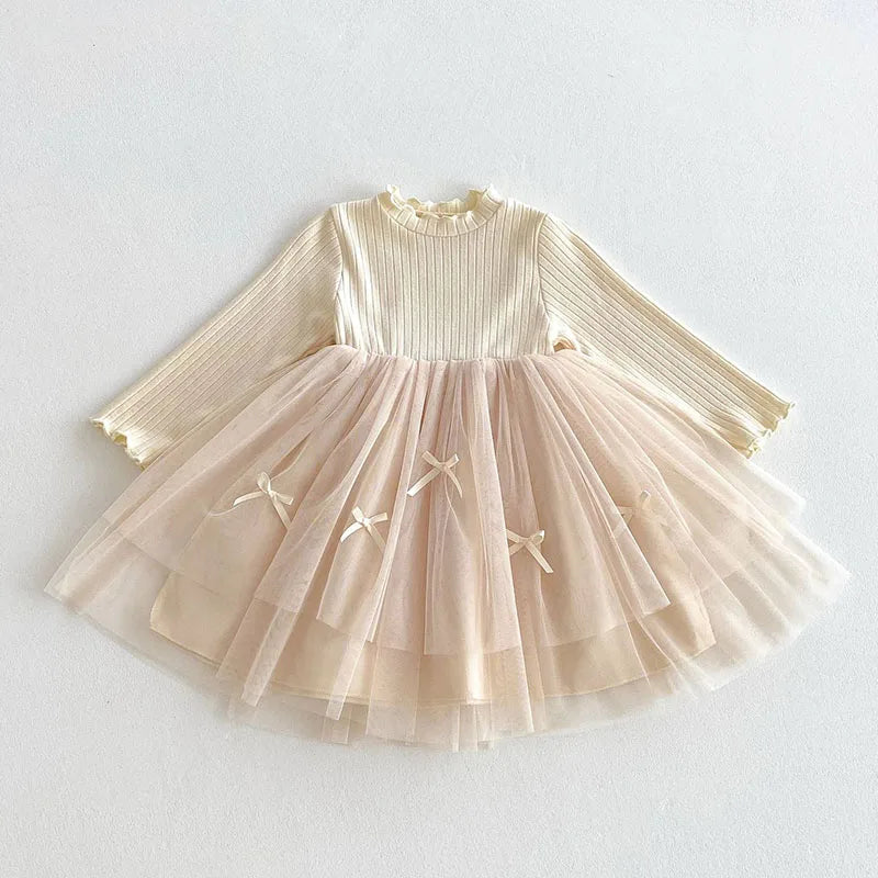 Long Sleeved Tulle Ribbon Dress