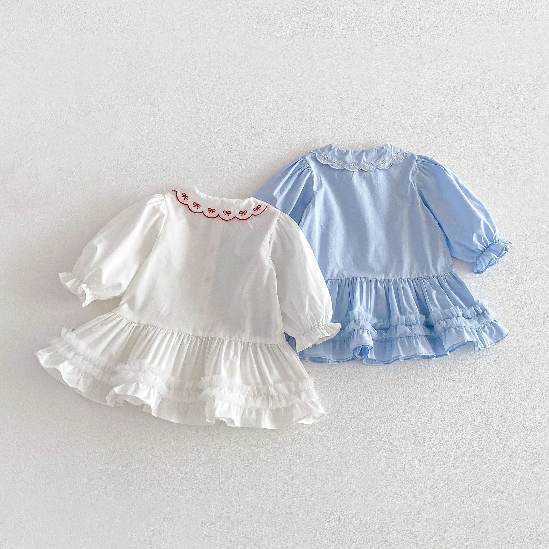Embroidered Ribbon Collar Frill Dress