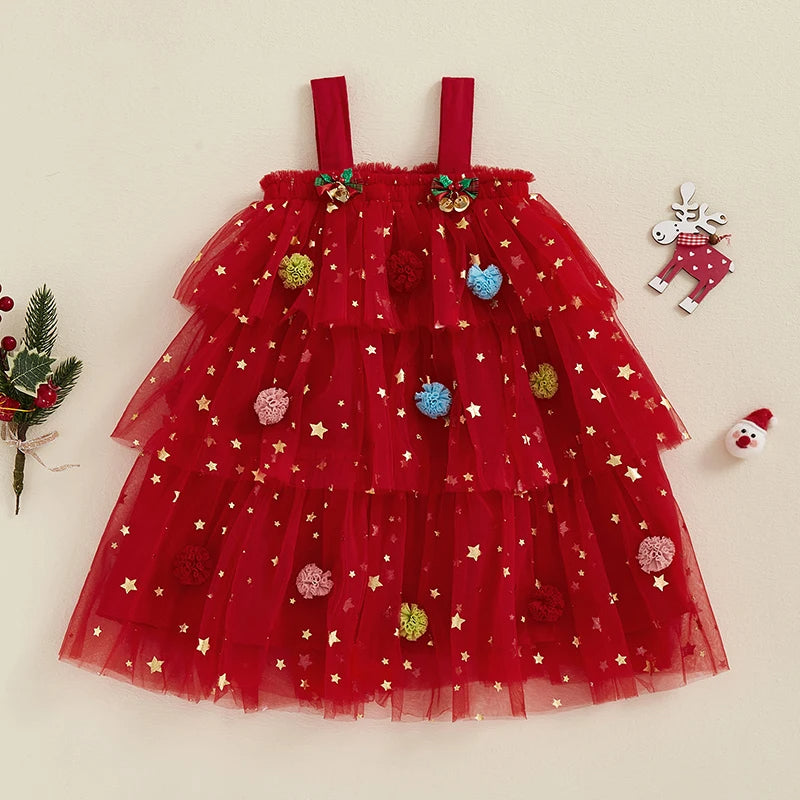 This Christmas, make a statement with our Layered Tulle Dress. This dress features layers of soft, lightweight tulle perfect for twirling, and is adorned with festive Christmas designs. Made with high-quality materials, it's comfortable and durable. Add a touch of magic to your holiday celebrations with this beautiful dress.